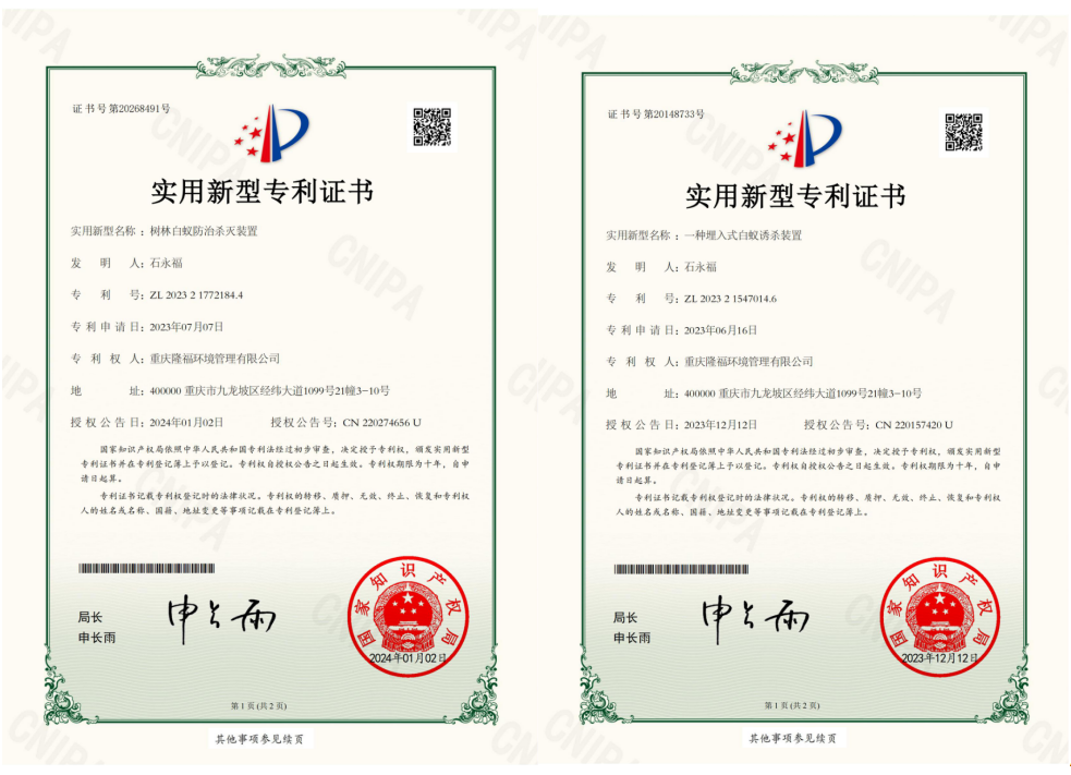 我司是全國白蟻防治標準化建設和實施的試點單位、是率先獲得“全國白蟻防治(高級)專業(yè)服務能力單位”、全國白蟻防治中心委員單位、堤壩白蟻防治標準流程化施工的創(chuàng)始單位、川渝地區首家開展白蟻防治技術培訓的教學單位、重慶市白蟻專委會理事單位、有害生物防治A級單位。